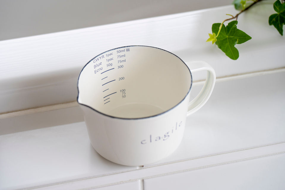 clargileのオリジナル ホーロー マグカップは、クレイペーストを作る時に便利なメジャー付ホーローカップです。